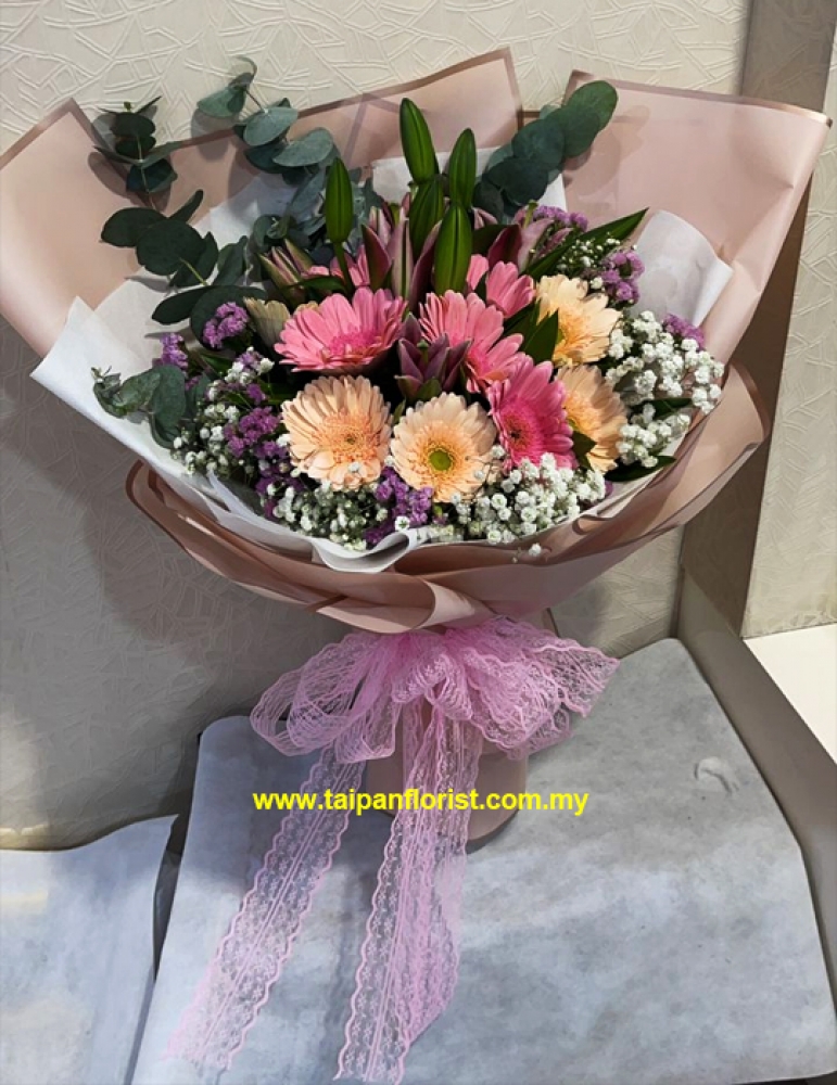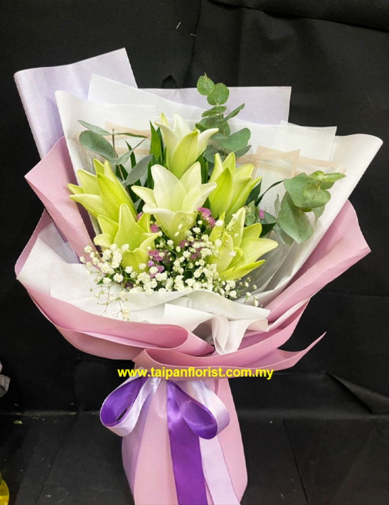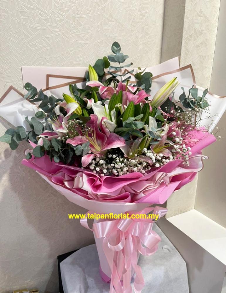 HB135 -2 stalks Yellow Lilies & 3 Pink Lilies