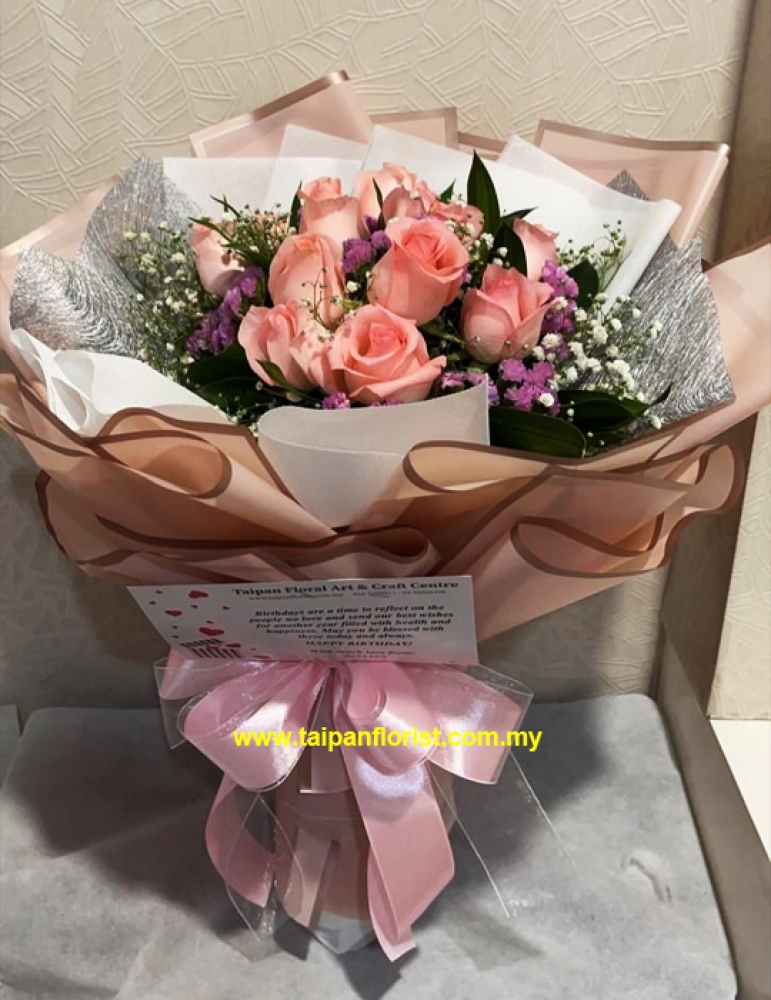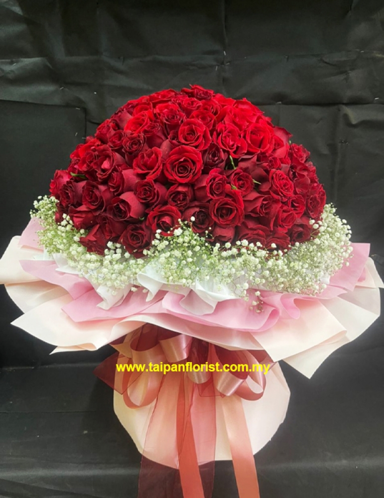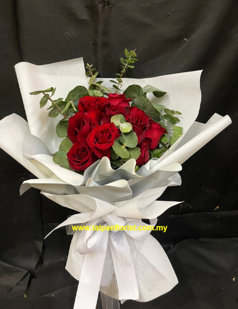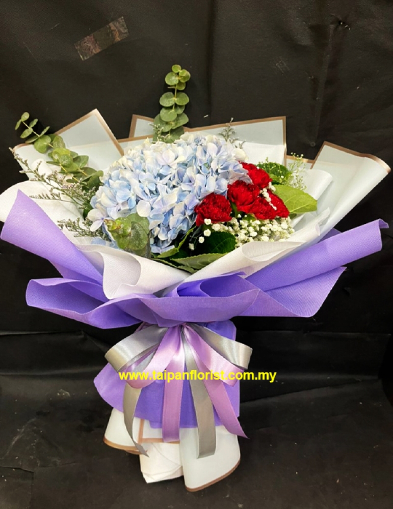 HB141 -6stalks Red Roses & one Blue Hydranga