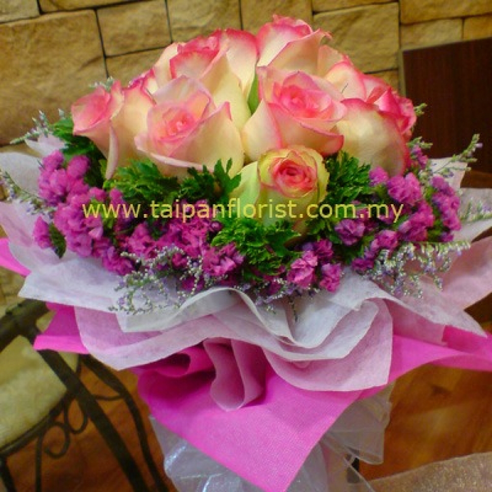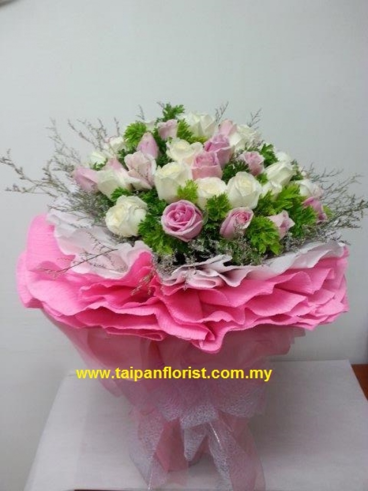 HB073 - 20 Stalks White & Pink Roses