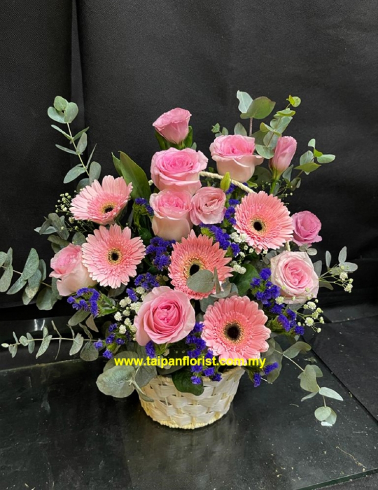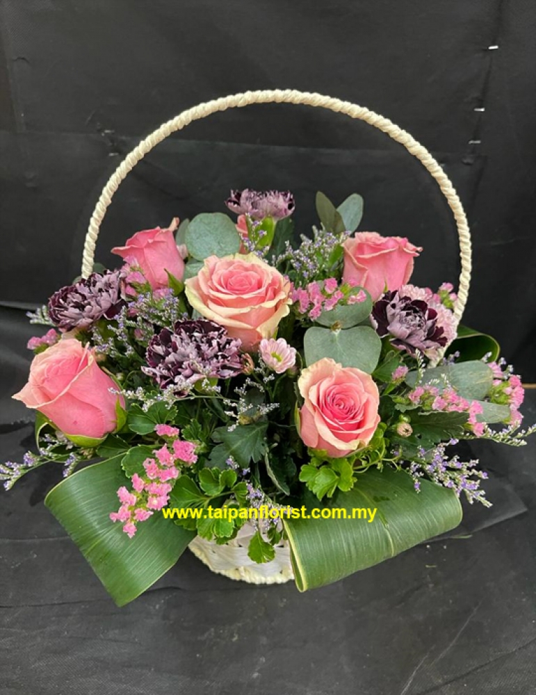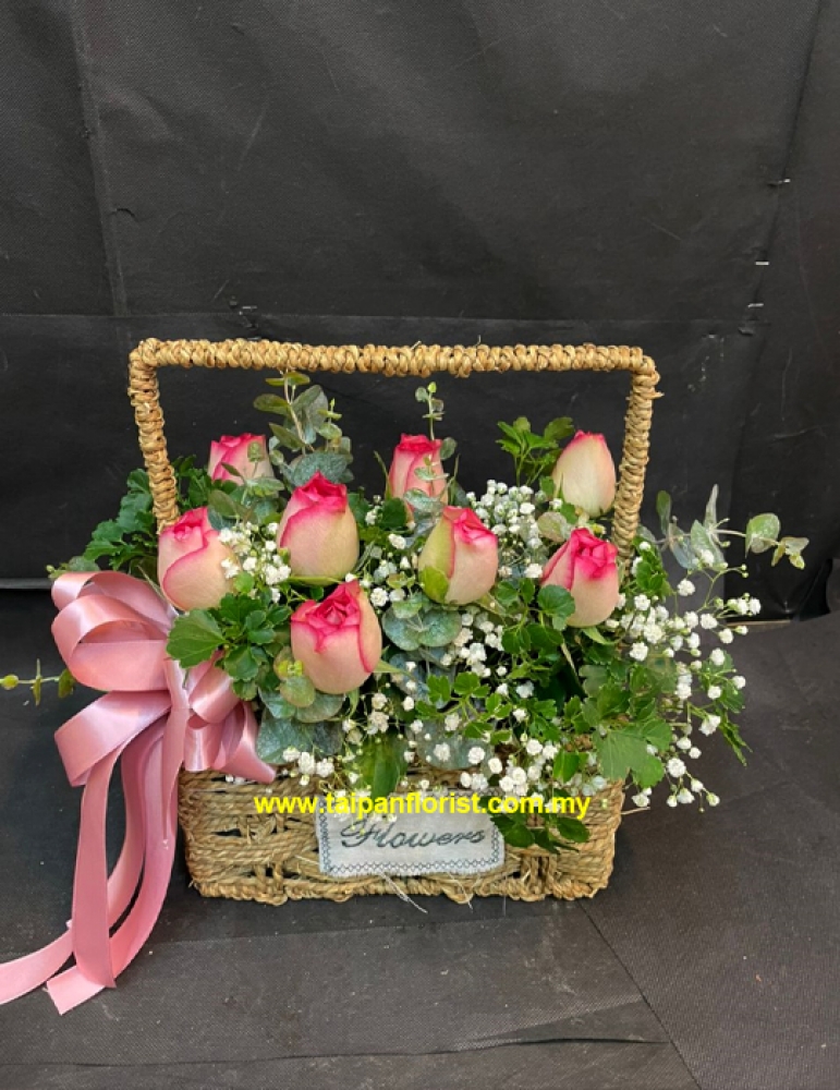 MD068 - 8 Stalks Pink Roses Basket